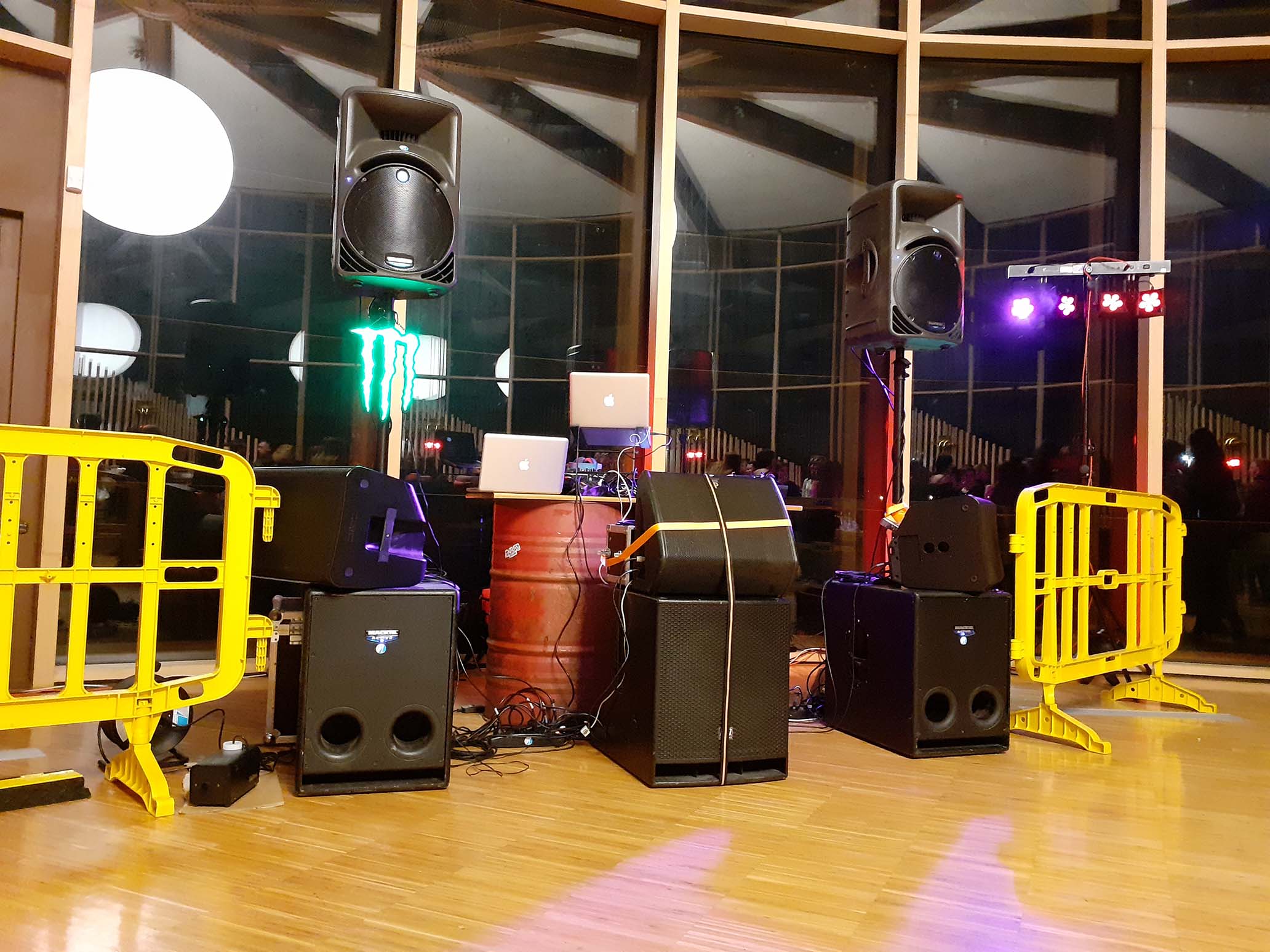 Mixer audio e luci, macchine del fumo, speakers di qualità per dare il via alla festa.